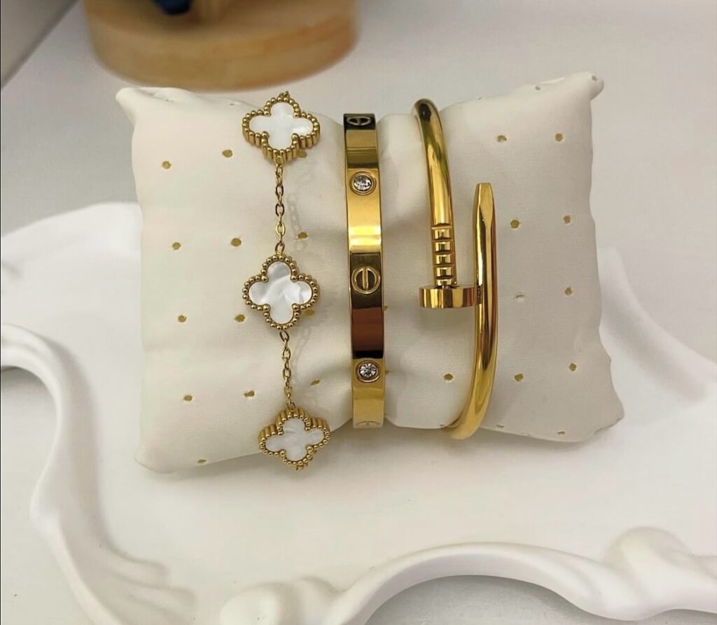 At Bangle Boutique, we offer a stunning range of customized 18K gold-plated stainless steel jewelry — made to shine and built to last.