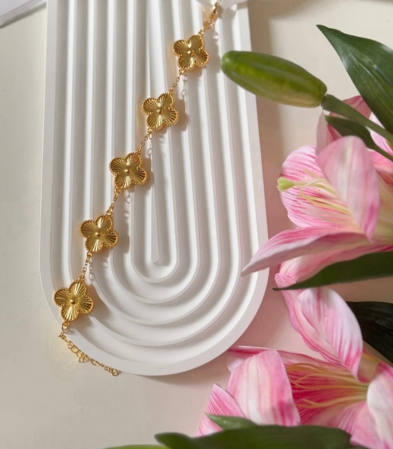 A floral-themed jewelry holder with golden accents—ideal for showcasing your favorite pieces.